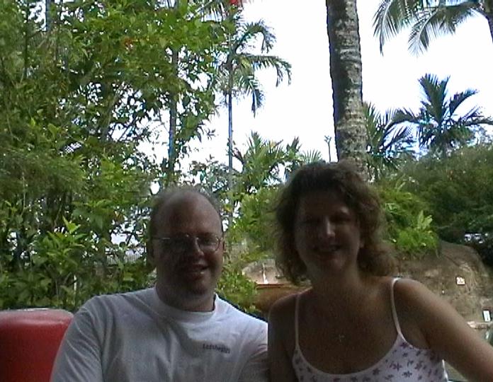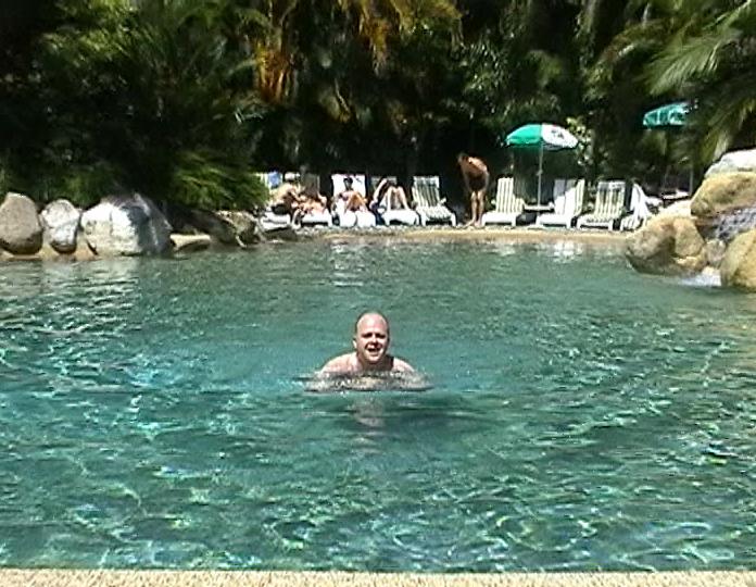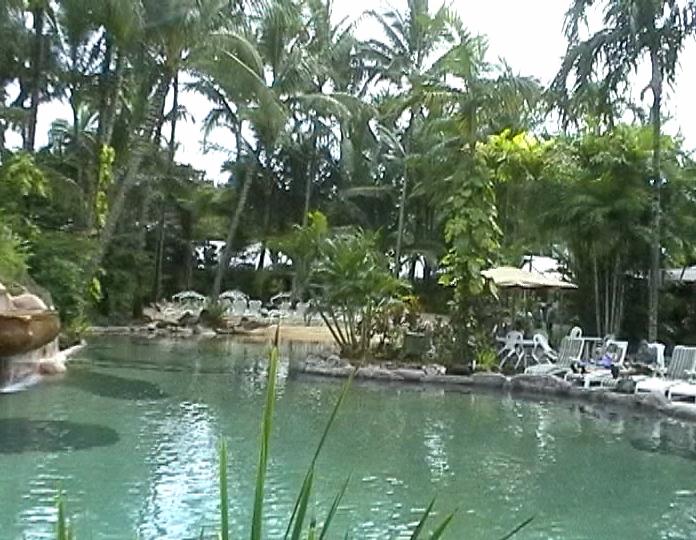 Rhiga Colonial Club This wonderful resort is only a could of km outside of Cairns. Just a couple of shots of the entrance to the hotel. The main lagoon pool The Club Pool with Cherie in the distance. with Cherie in the distance Steve having a swim in the Club Pool The two of us The Verandha of Jardine's Restaurant Back Next