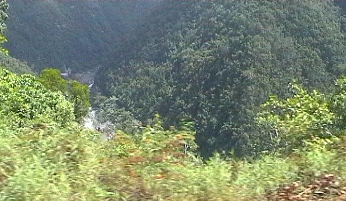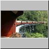 Looking down into the gorge at the train winds its way up into the hills.