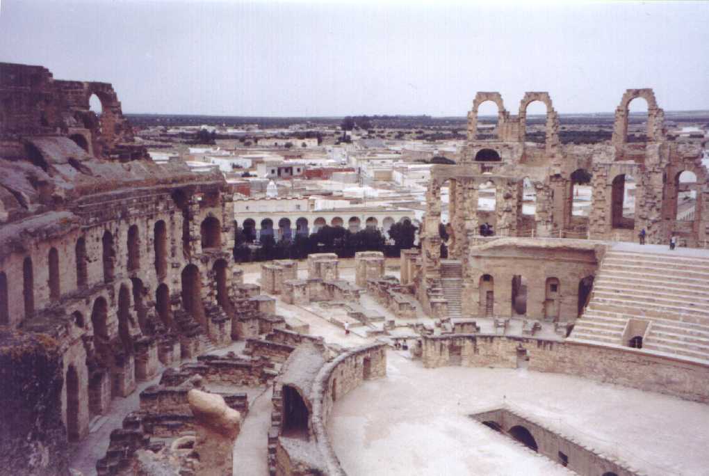 The combination of old and new is quite odd with the town that has built up around the ampitheatre very visible from any vantage point.